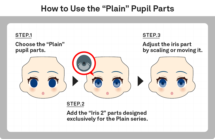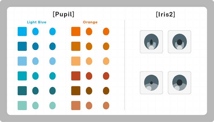By combining them with the exclusive “Iris 2” parts, you can freely customize the size and expression of the pupil.