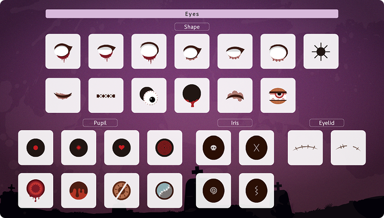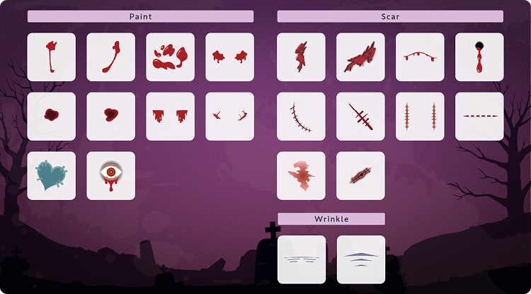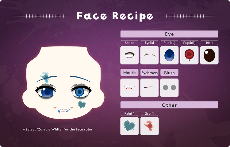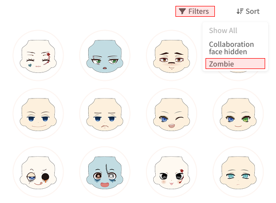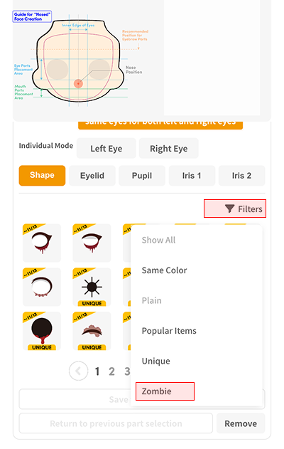 In the Face Creation screen, select the “Zombie” filter to narrow down the parts to zombie-only options.