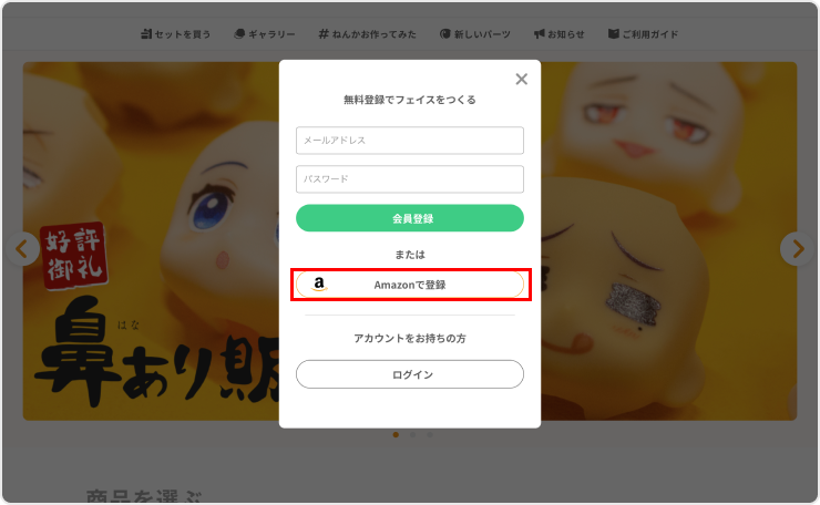 Amazonアカウントで会員登録する場合