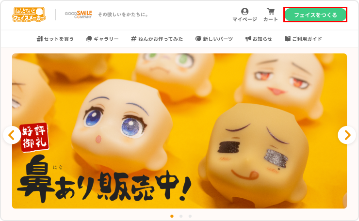 豊富なデザインパーツからお好みのパーツを自由に選択・配置することで、自分だけのオリジナルフェイスを作成できるグッドスマイルカンパニーの公式サービスです。
